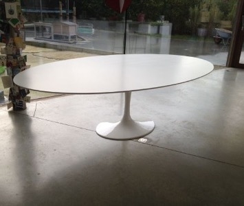 De tulp tafel in een formaat van 244 x 137 cm. met een voet. Groter kan nog maar dan komen er 2 voeten onder.