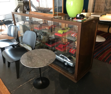 Antieke glazen / houten toonbank vitrine