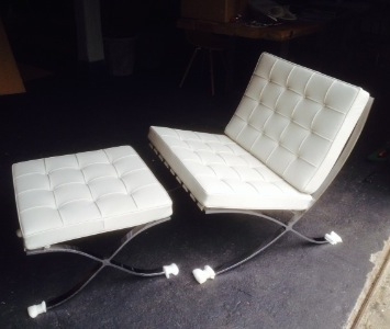 Barcelona stoel en hocker, wit volnerf aniline leer