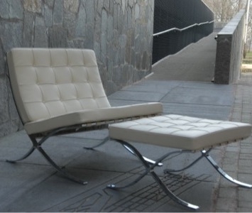 Barcelona stoel en hocker van Mies van der Rohe, 100% made in Italy, zwaar verchroomd Casprini frame, zware tuigleren singels in kleur, hoge persing koudschuim in de kussens, leren koorden en knopen, leer in door en door geverfd europees aniline leer met gladde structuur van het Italiaanse Dani, 10 jaar garantie, 100% topkwaliteit uit Italie !