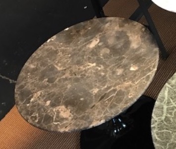 Spaans bruin Emperador marmer en bovengenoemde foto is slechts een voorbeeld want de tulp tafel met dit marmer is in elke gewenste maat in rond of ovaal leverbaar. Een matte finish en geimpregneerd tegen vlekken. Een voorbeeld te bekijken in onze Studio.