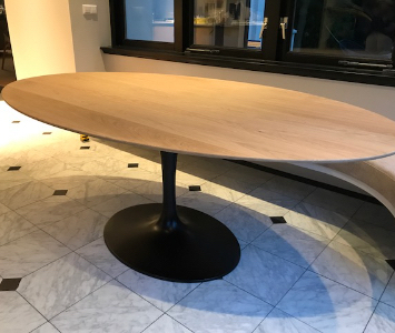 Tulp tafel van Eero Saarinen voorzien van blad in massief 3 laags kruislings verlijmd eiken