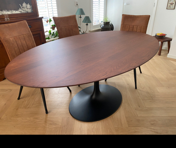 Tulp tafel met een blad in massief hout / noten / coating