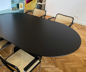 Tulp tafels voorzien van bladen in Deens ovaal.